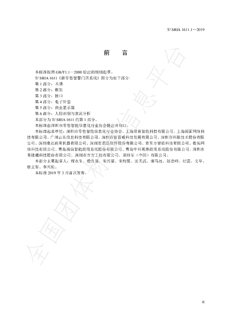 深圳市零售智能信息化行业协会、上海保资智能科技有限公司、上海阅面网络科技有限公司 、广州云从信息科技有限公司、深圳市智百威科技发展有限公司、深圳市科脉技术股份有限公司、深圳桑达商用机器有限公司、深圳市思迅软件股份有限公司、京东方智能科技有限公司、数拓网络科技有限公司、青岛海信智能商用系统股份有限公司、青岛中科英泰商用系统股份有限公司、深圳市易捷通科技股份有限公司、深圳市吉方工控有限公司、英特尔(中国)有限公司