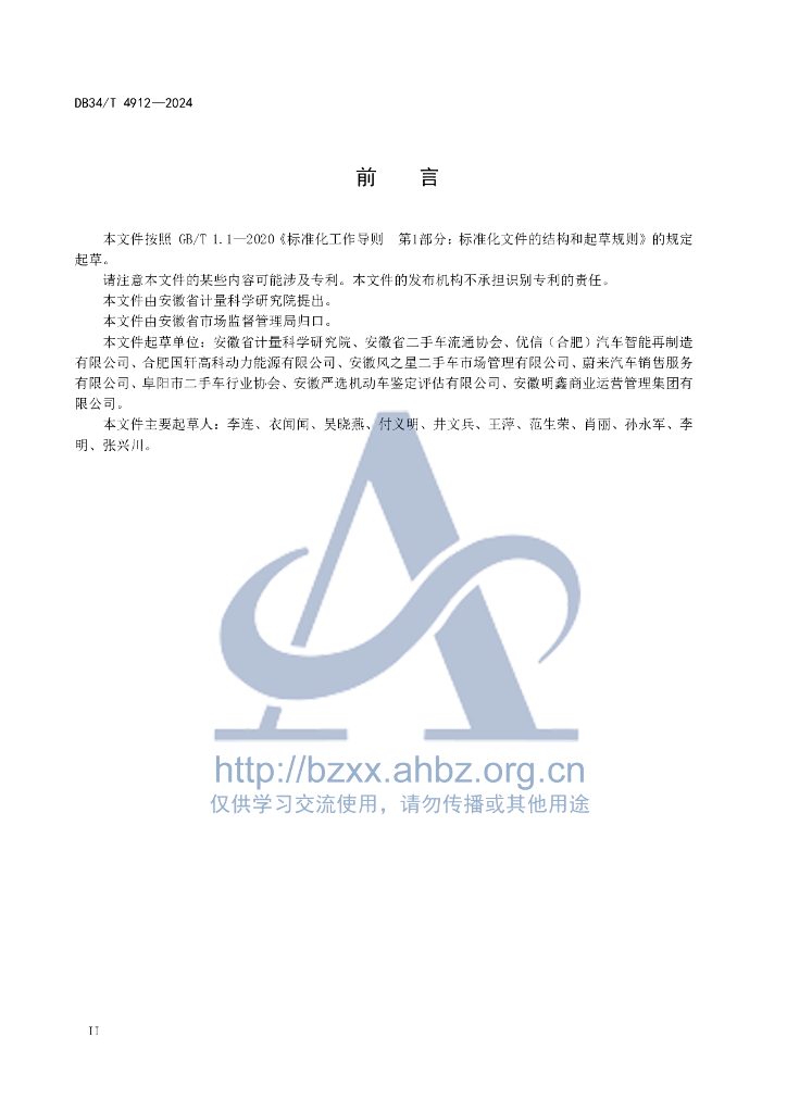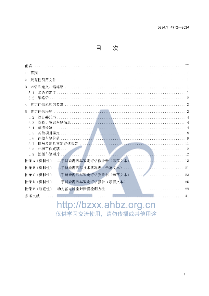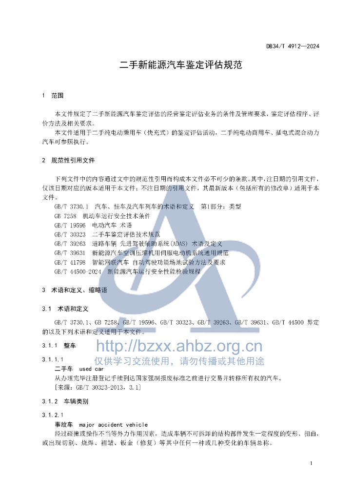DB34/T 4912-2024 二手新能源汽车鉴定评估规范