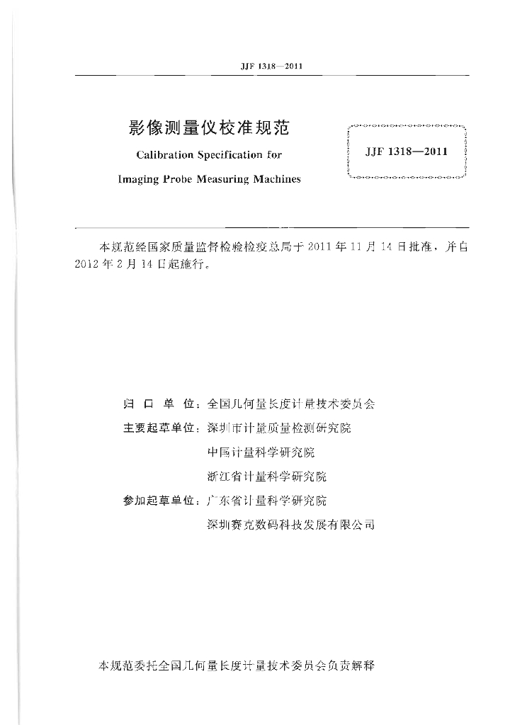 于冀平(深圳市计量质量检测研究院)、薛梓(中国计量科学研究院)、缪华清(深圳市计量质量检测研究院)、方南家(深圳市计量质量检测研究院)、茅振华(浙江省计量科学研究院)、梁小什(广东省计量科学研究院)、汤宁(深圳赛克数码科技发展有限公司)