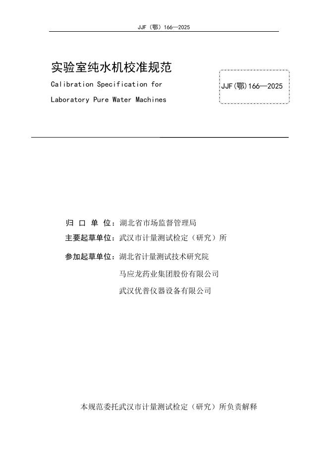 JJF(鄂)166-2025 实验室纯水机校准规范
