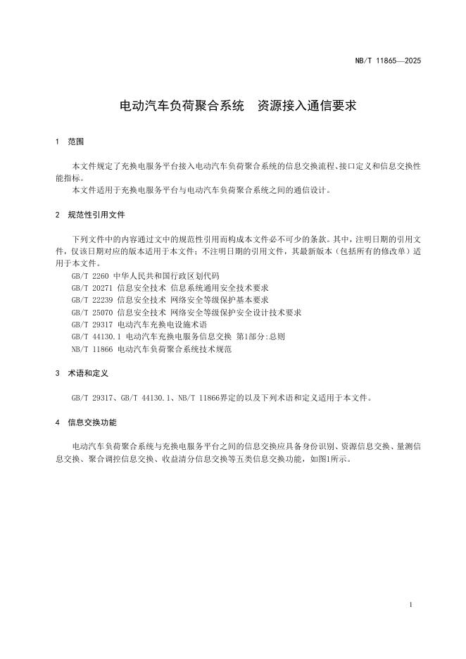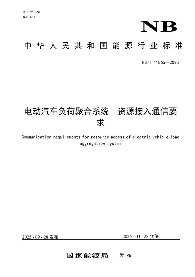 NB/T 11865-2025 电动汽车负荷聚合系统 资源接入通信要求