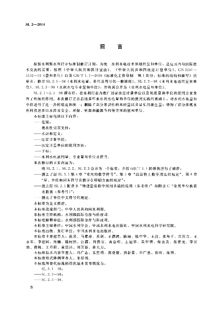 SL/T 2-2014 水利水电量和单位