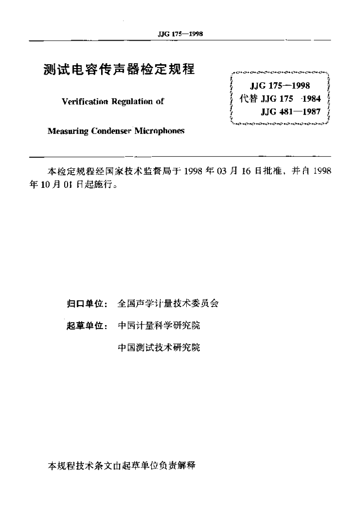 - 代替标准:JJG 175-1984、JJG 481-1987
