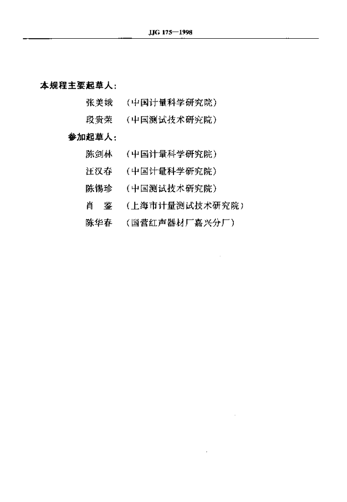 张美娥(中国计量科学研究院)、段贵荣(中国测试技术研究院)、陈剑林(中国计量科学研究院)、汪汉春(中国计量科学研究院)、陈锡珍(中国测试技术研究院)、肖鉴(上海市计量测试技术研究院)、陈华春(国营红声器材厂嘉兴分厂)
