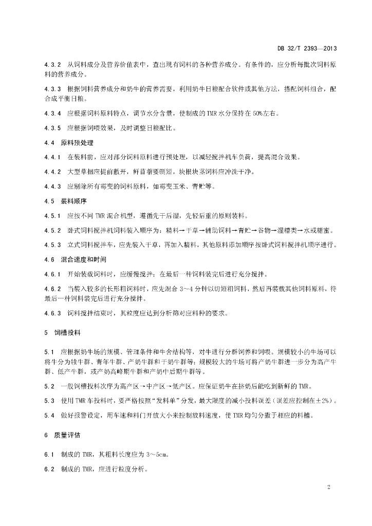 DB32/T 2393-2013 奶牛全混合日粮(TMR)制作技术规程