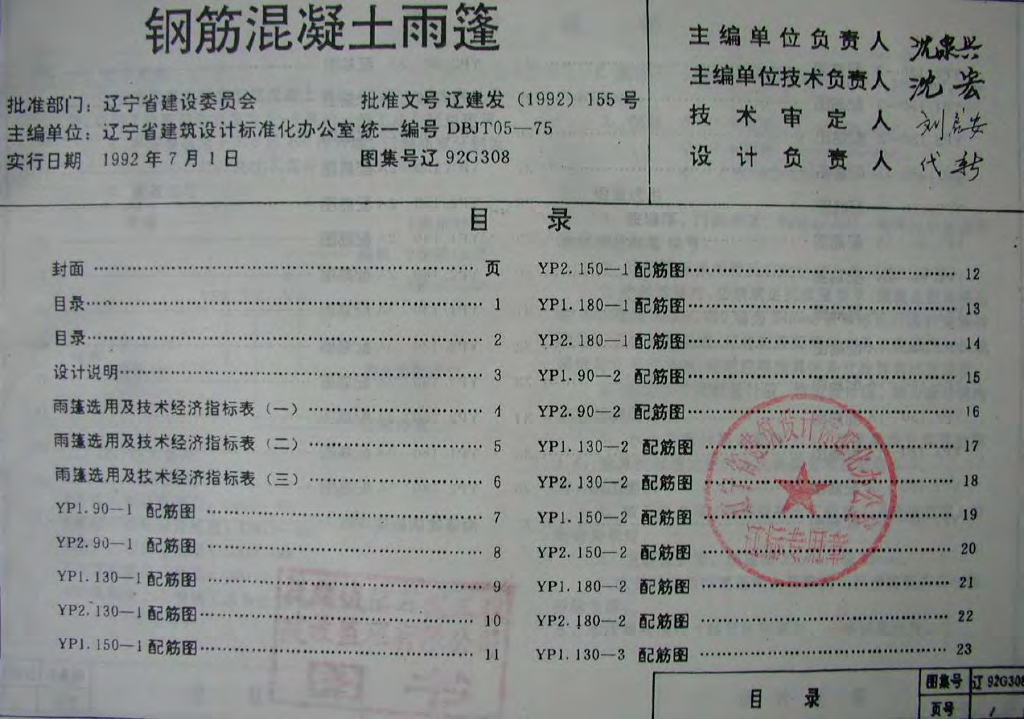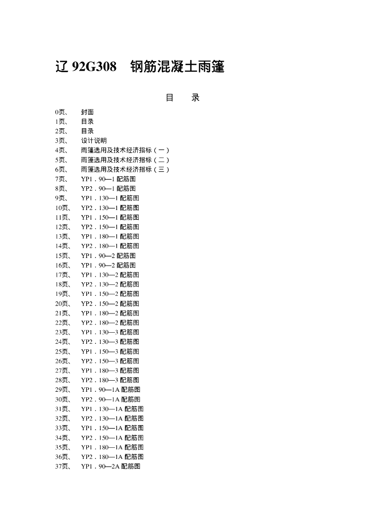 辽92G308 钢筋混凝土雨篷图集