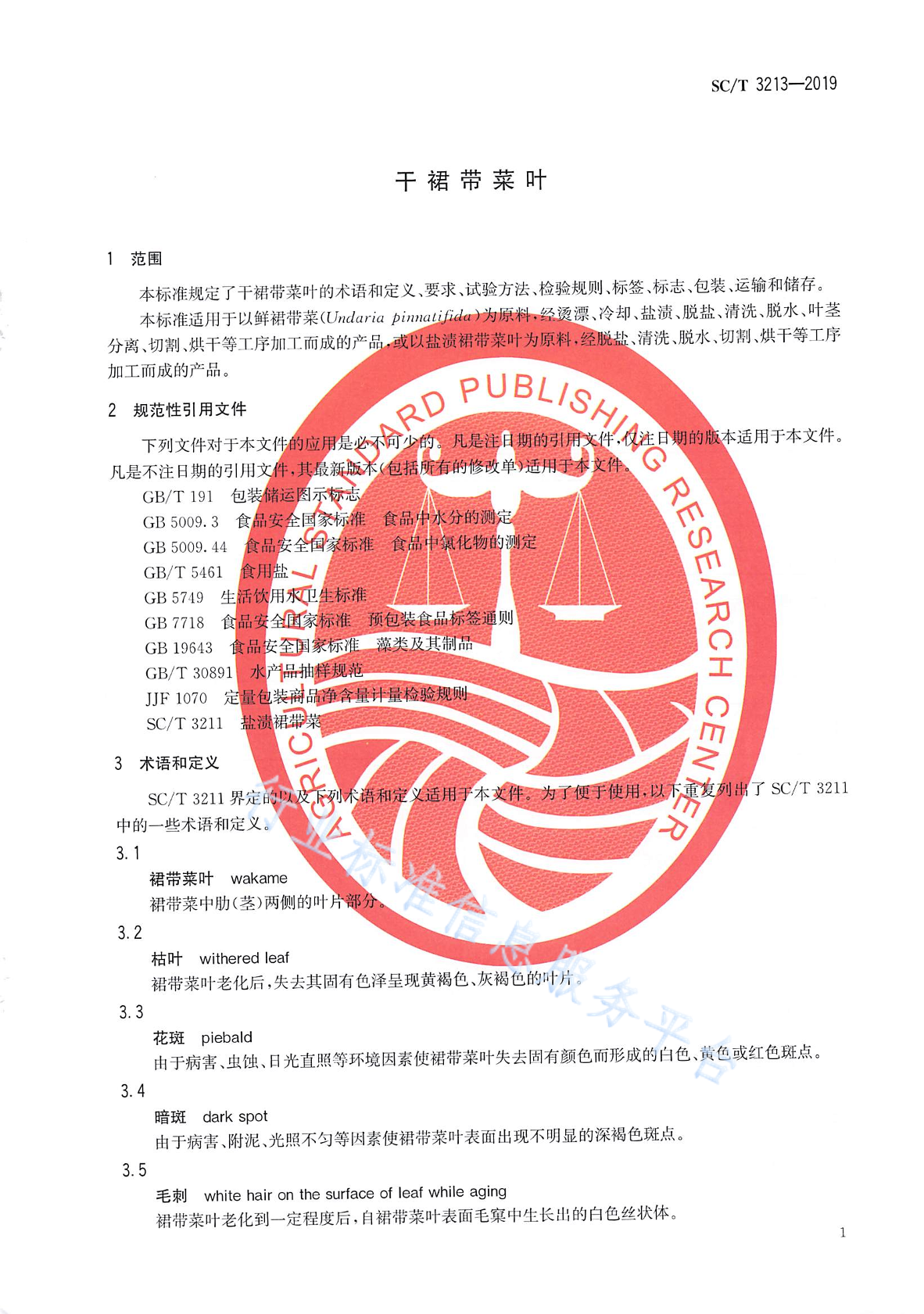 SC/T 3213-2019 干裙带菜叶