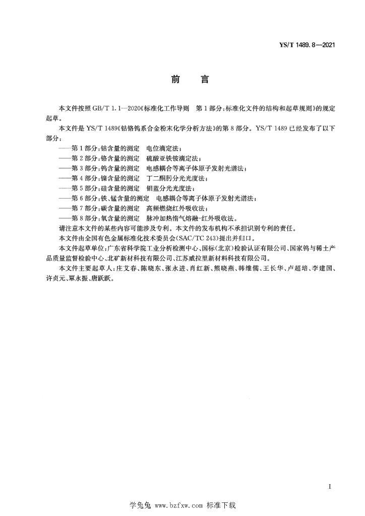 广东省科学院工业分析检测中心、国标(北京)检验认证有限公司、国家钨与稀土产品质量监督检验中心、北矿新材科技有限公司、江苏威拉里新材料科技有限公司