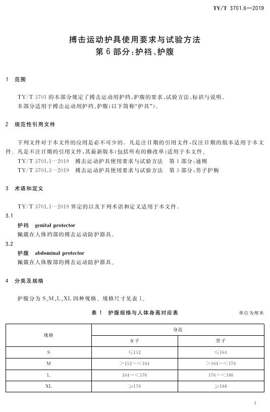 TY/T 3701.6-2019 搏击运动护具使用要求与试验方法 第6部分:护裆、护腹
