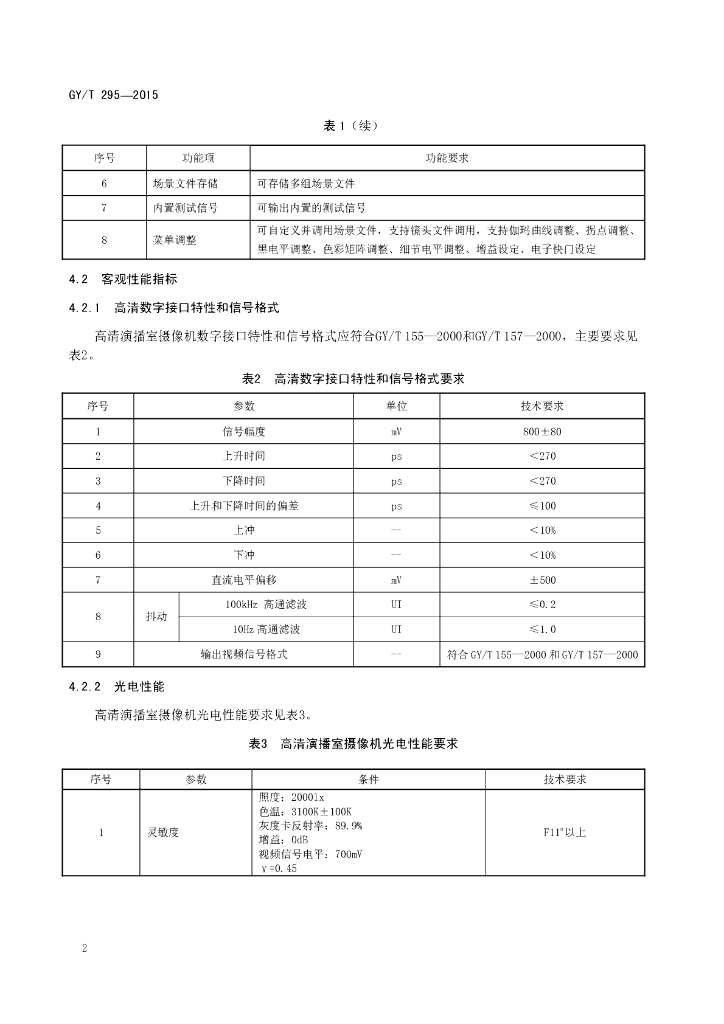 GY/T 295-2015 广播级高清摄像机技术要求和测量方法