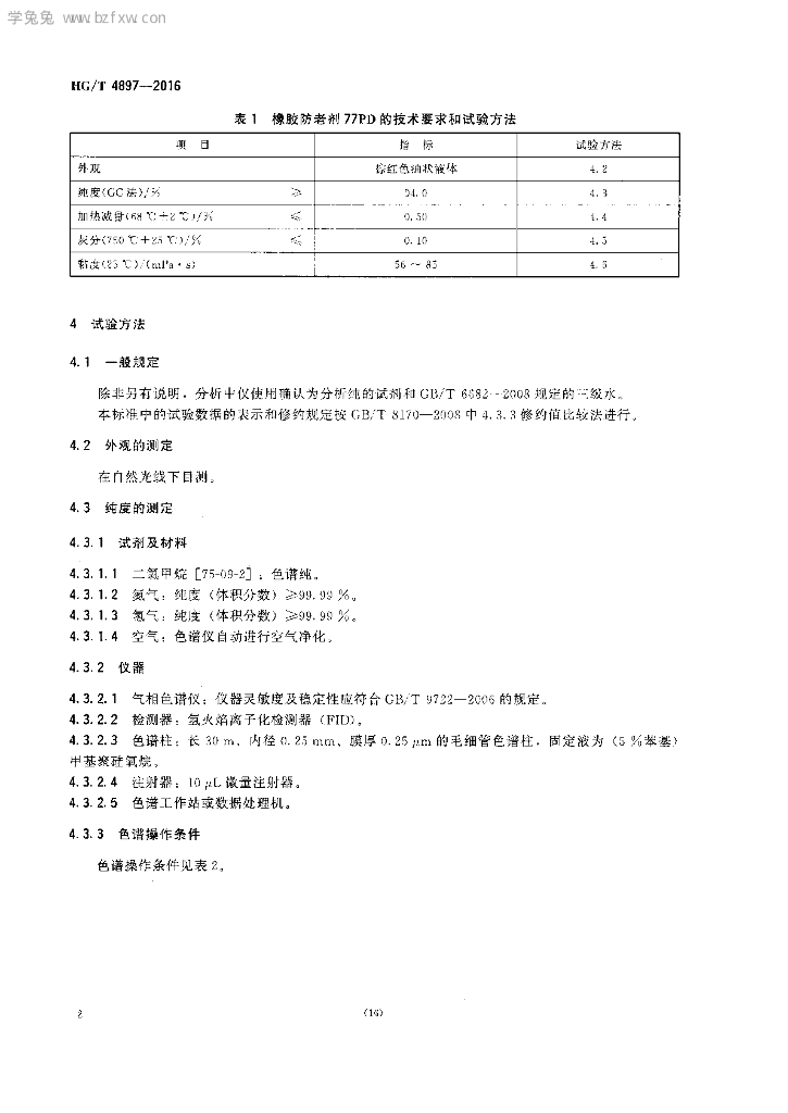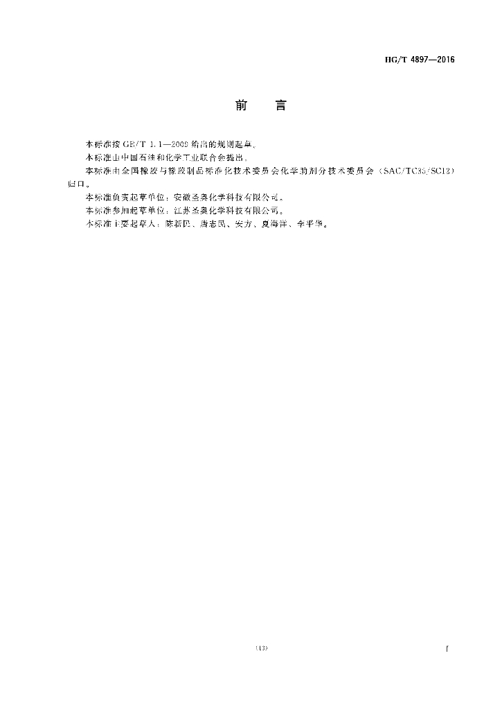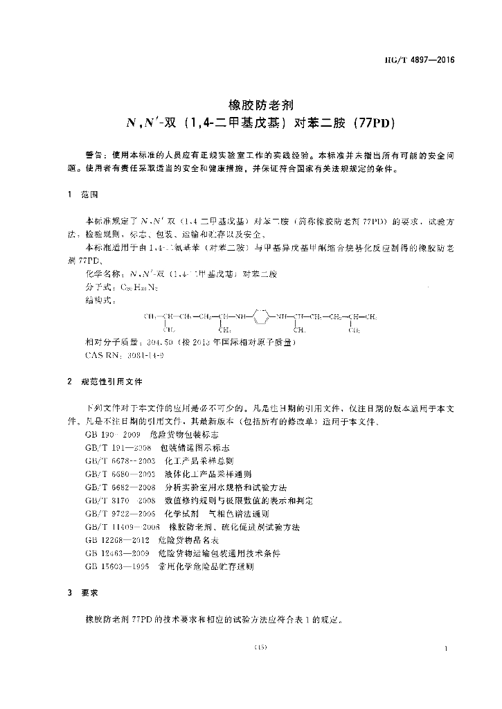 HG/T 4897-2016 橡胶防老剂 N,N’-双(1,4二甲基戊基)对苯二胺(77PD)