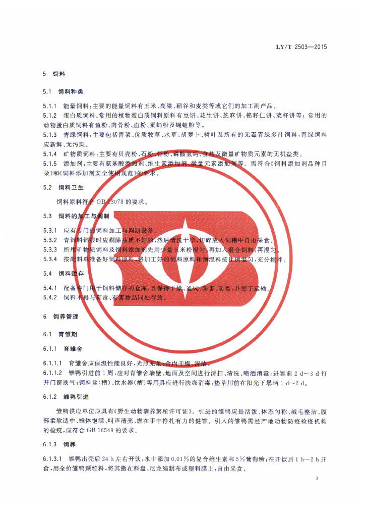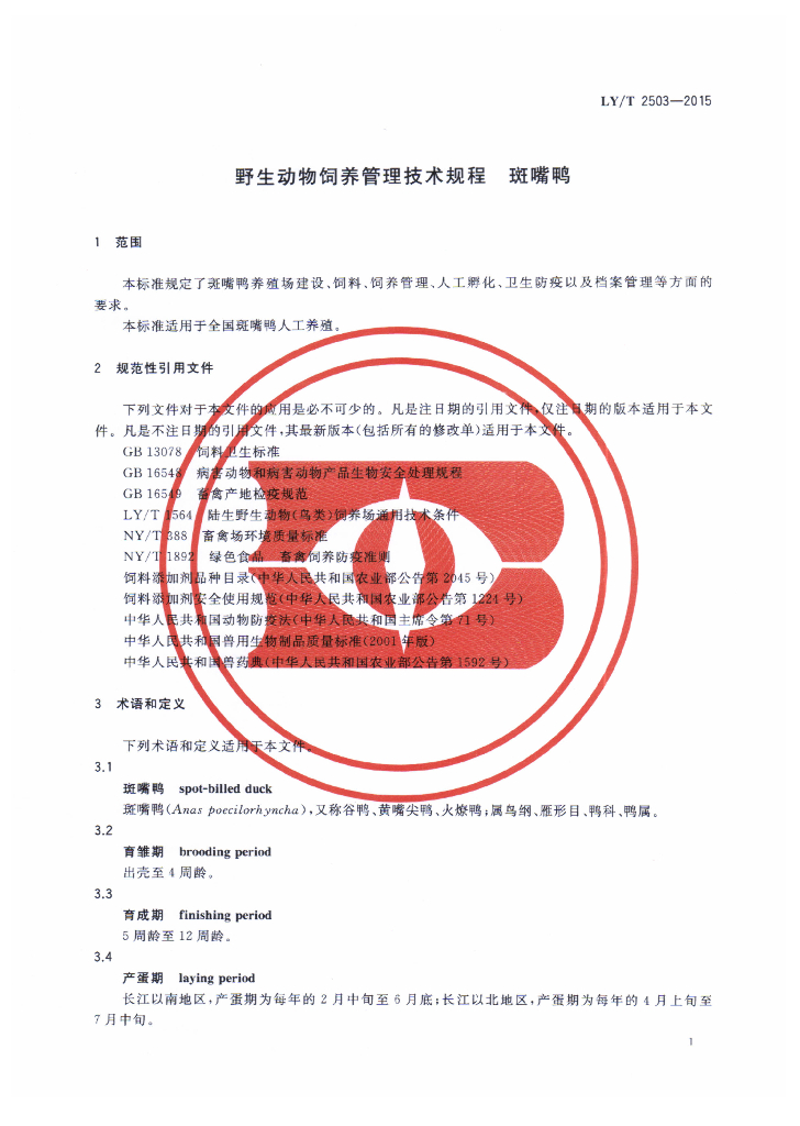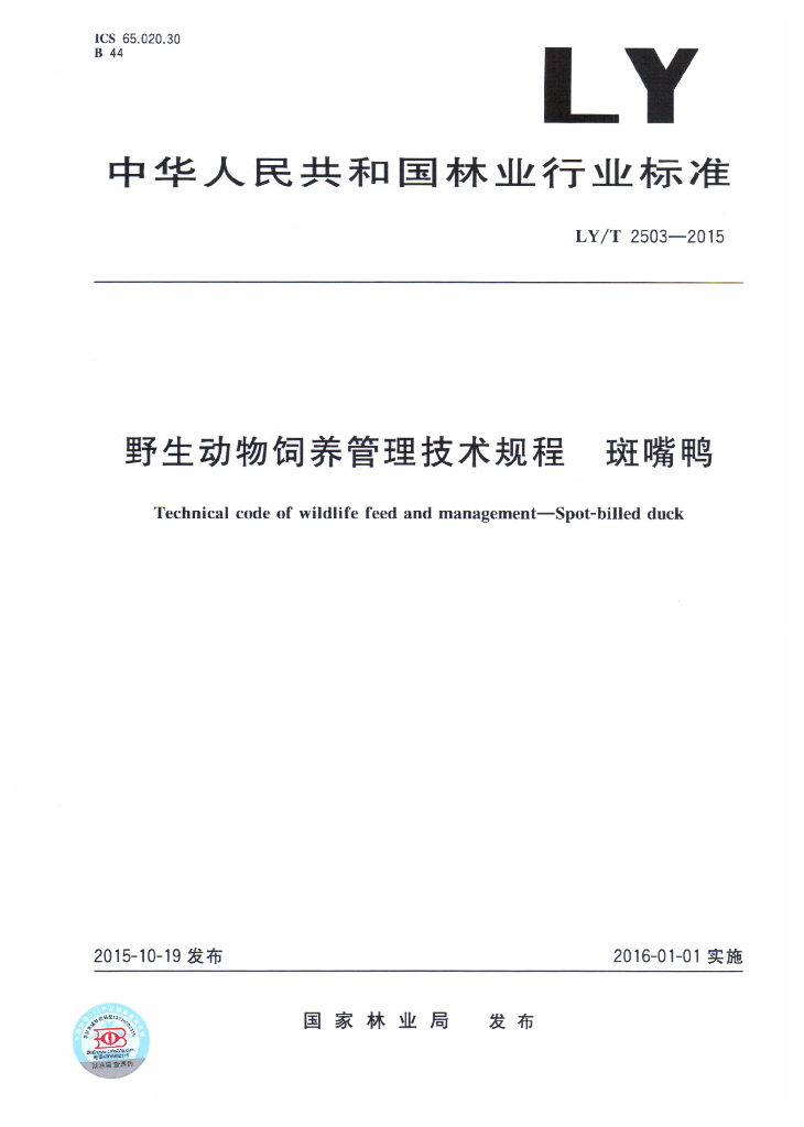 LY/T 2503-2015 野生动物饲养管理技术规程 斑嘴鸭