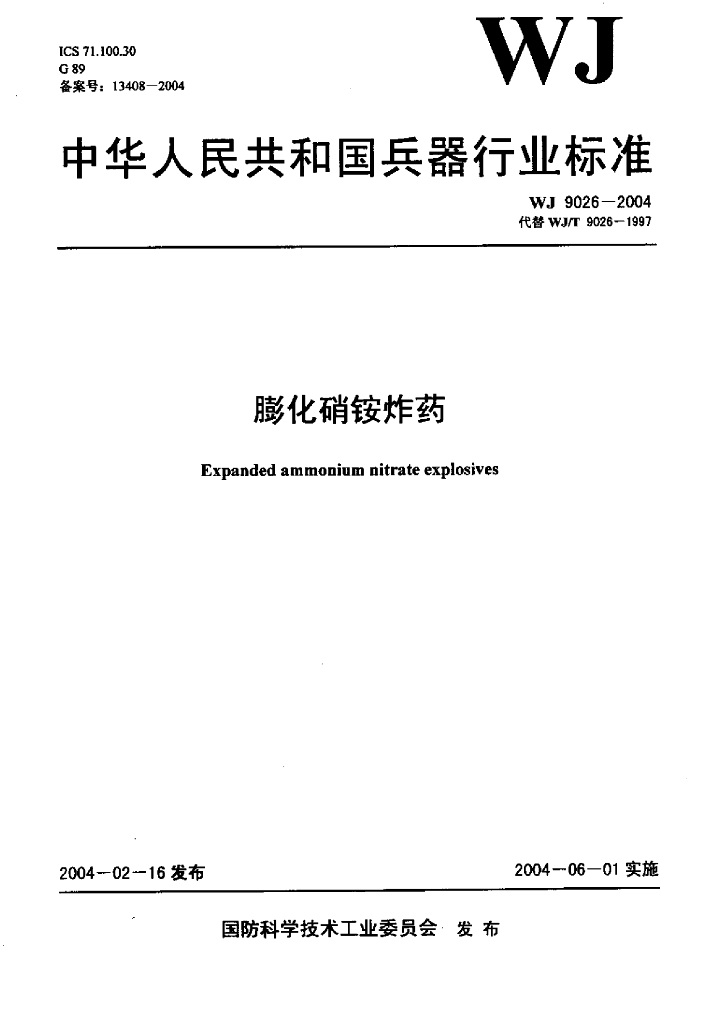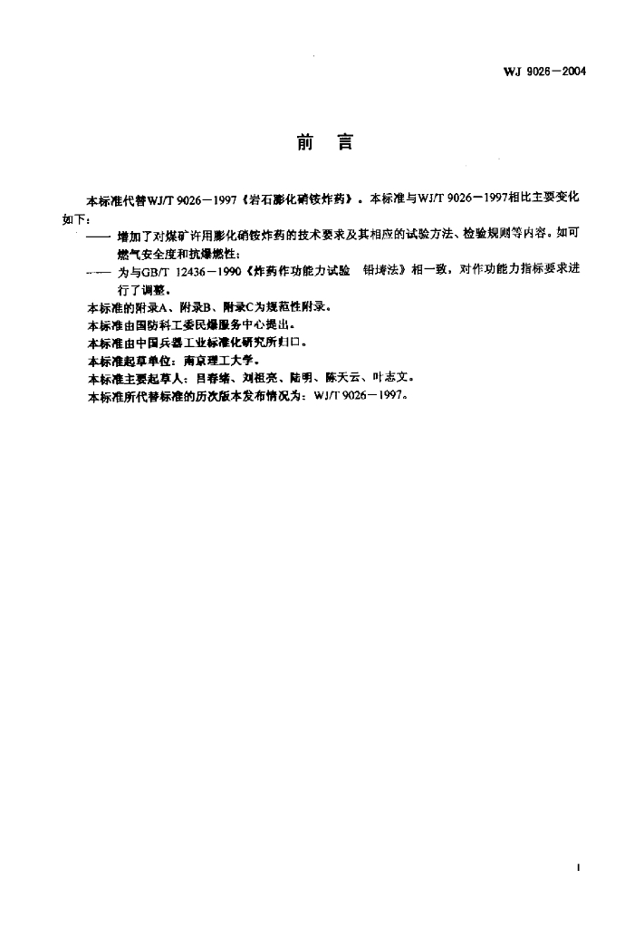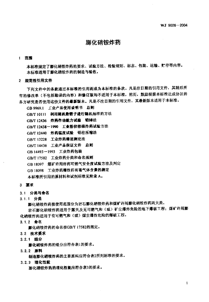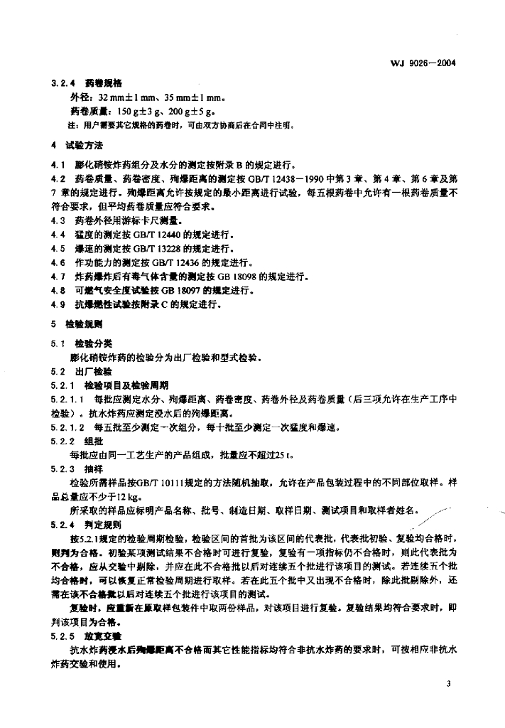 WJ 9026-2004 膨化硝铵炸药