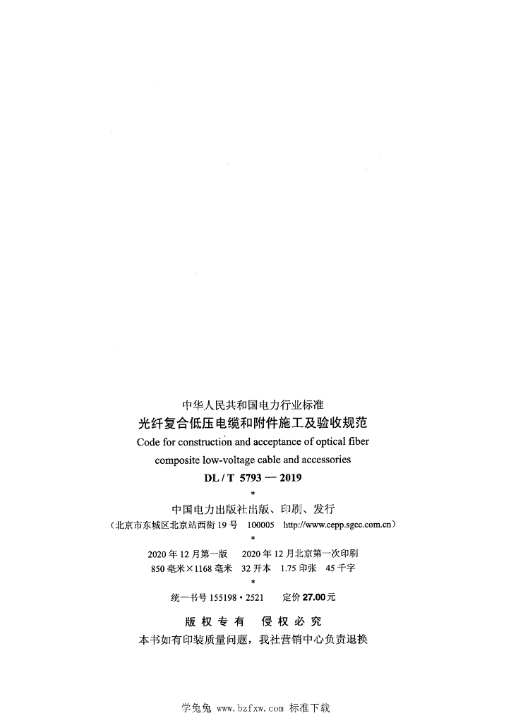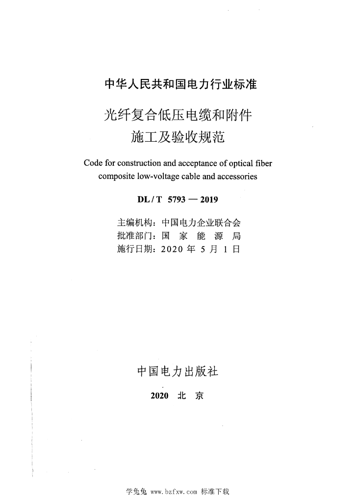 DL/T 5793-2019 光纤复合低压电缆和附件施工及验收规范