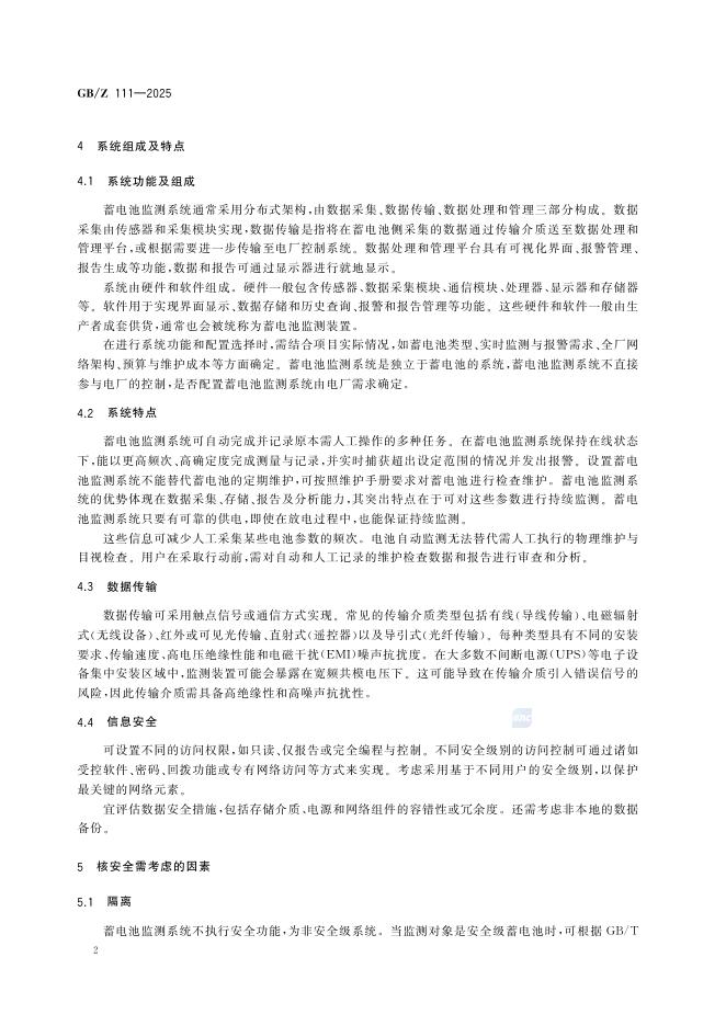 GB/Z 111-2025 核电厂固定式铅酸蓄电池监测系统选择与使用指南