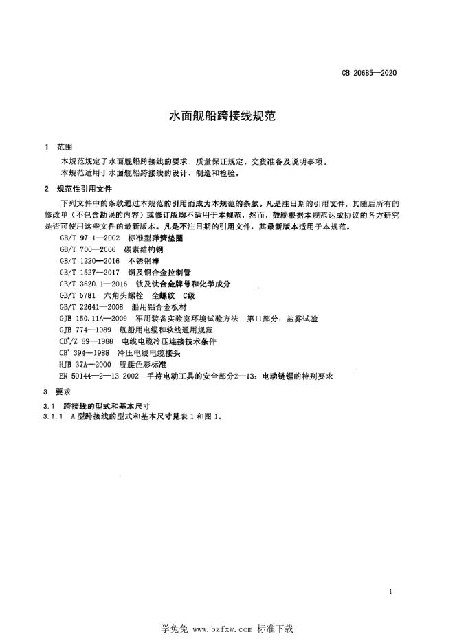 CB 20685-2020 水面舰船跨接线规范