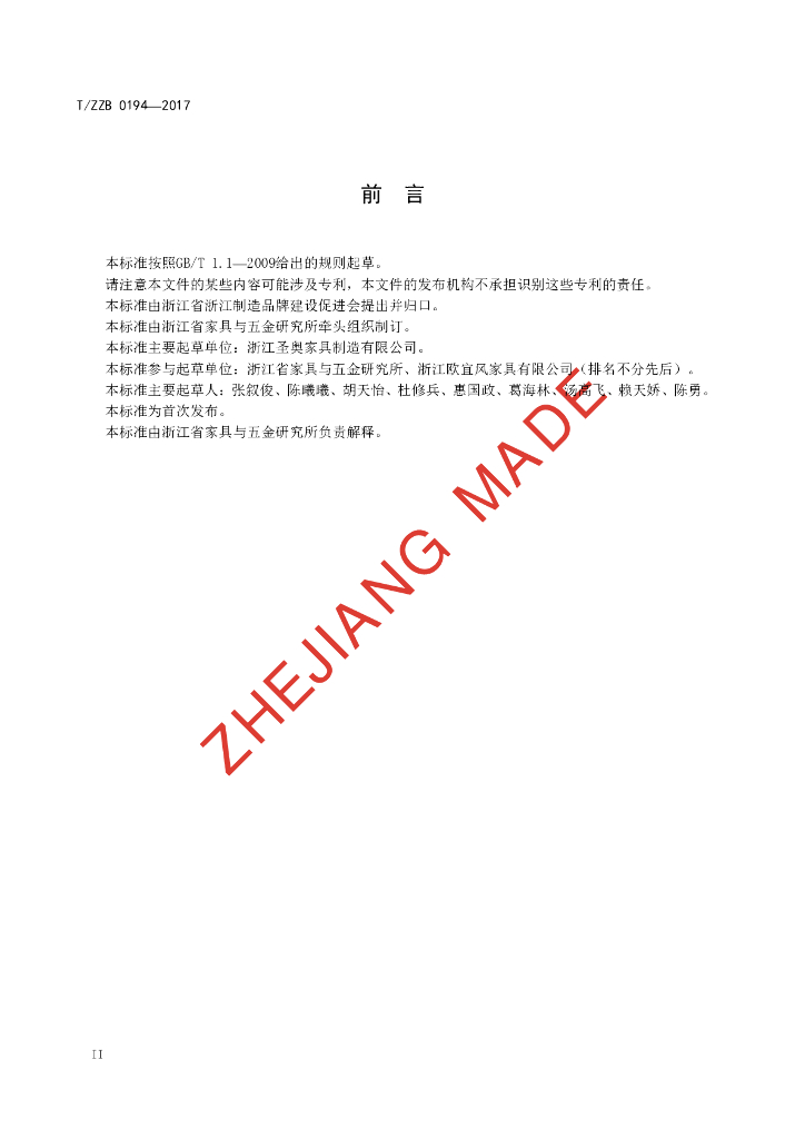 本标准由浙江省家具与五金研究所牵头组织制订。、本标准主要起草单位:浙江圣奥家具制造有限公司。、本标准参与起草单位:浙江省家具与五金研究所、浙江欧宜风家具有限公司(排名不分先后)。