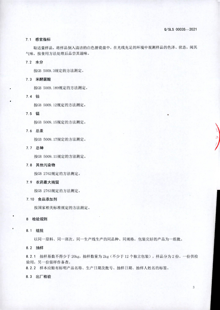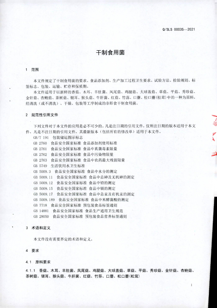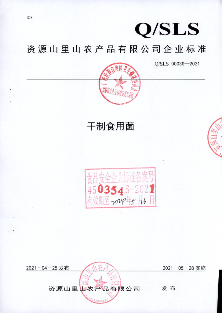 Q/SLS 0003S-2021 干制食用菌