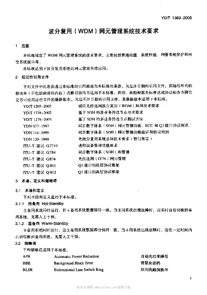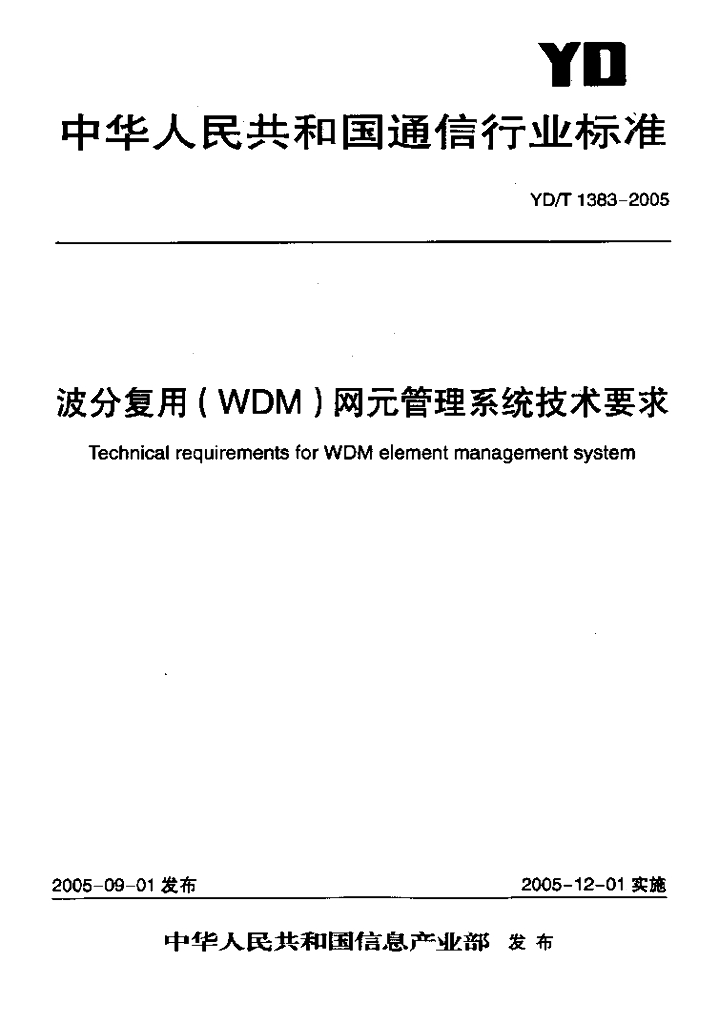 YD/T 1383-2005 波分复用(WDM)网元管理系统技术要求