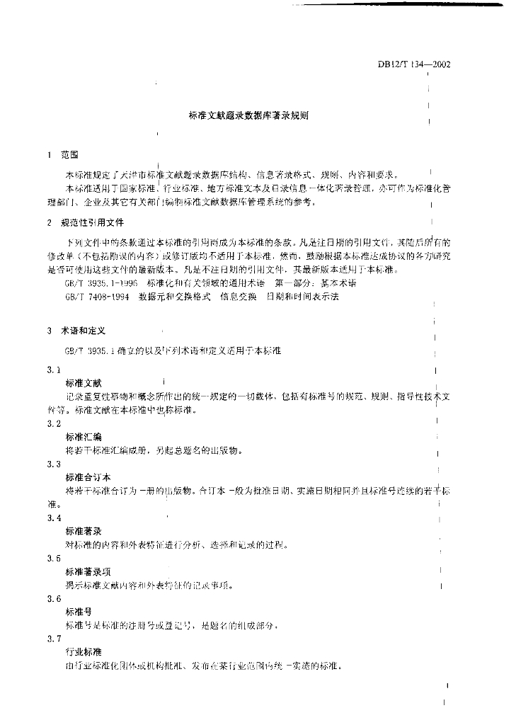 DB12/T 134-2002 标准文献题录数据库著录规则