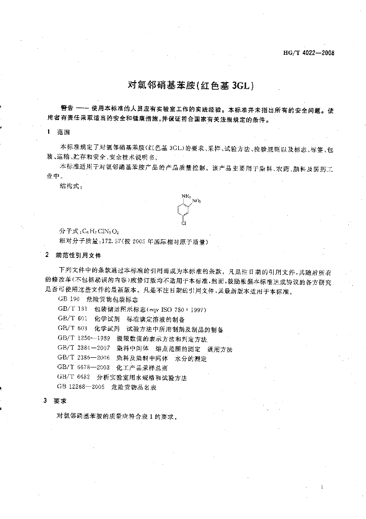 HG/T 4022-2008 对氯邻硝基苯胺(红色基 3GL)