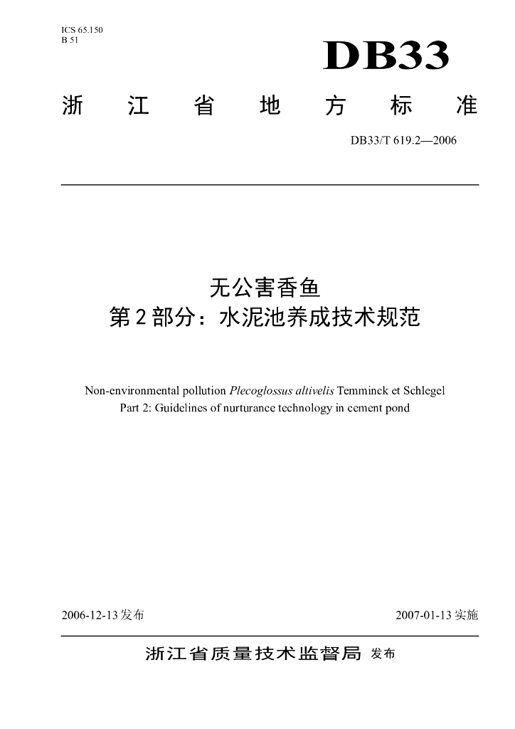 DB33/T 619.2-2006 无公害香鱼 第2部分:水泥池养成技术规范