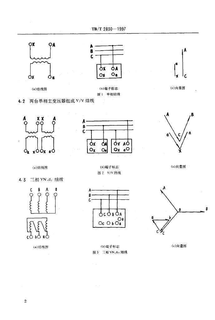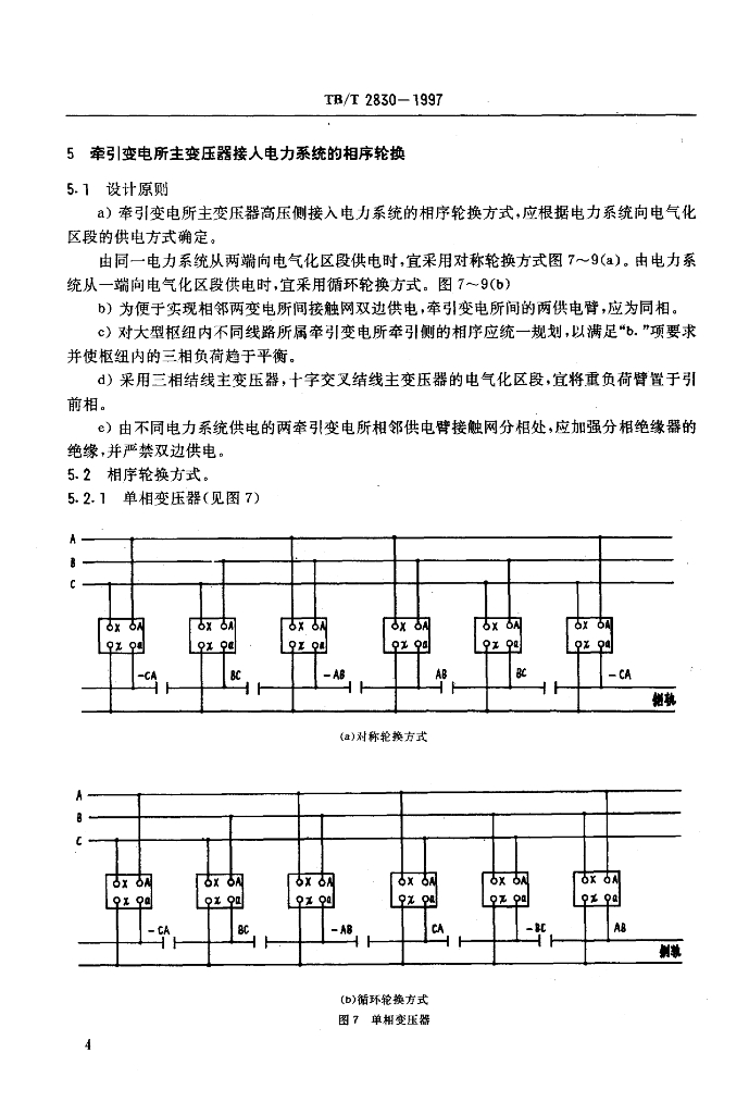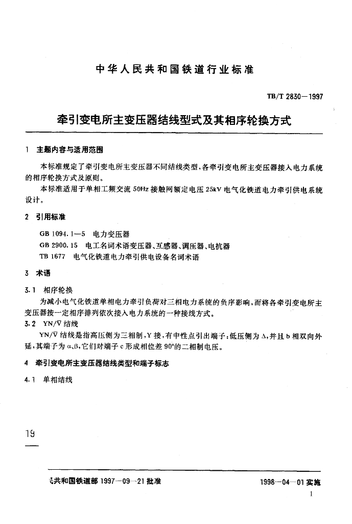 TB/T 2830-1997 牵引变电所主变压器结线型式及其相序轮换方式