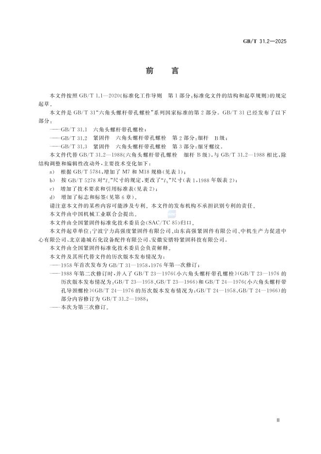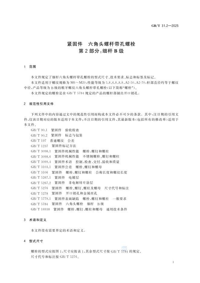GB/T 31.2-2025 紧固件 六角头螺杆带孔螺栓 第2部分:细杆 B级