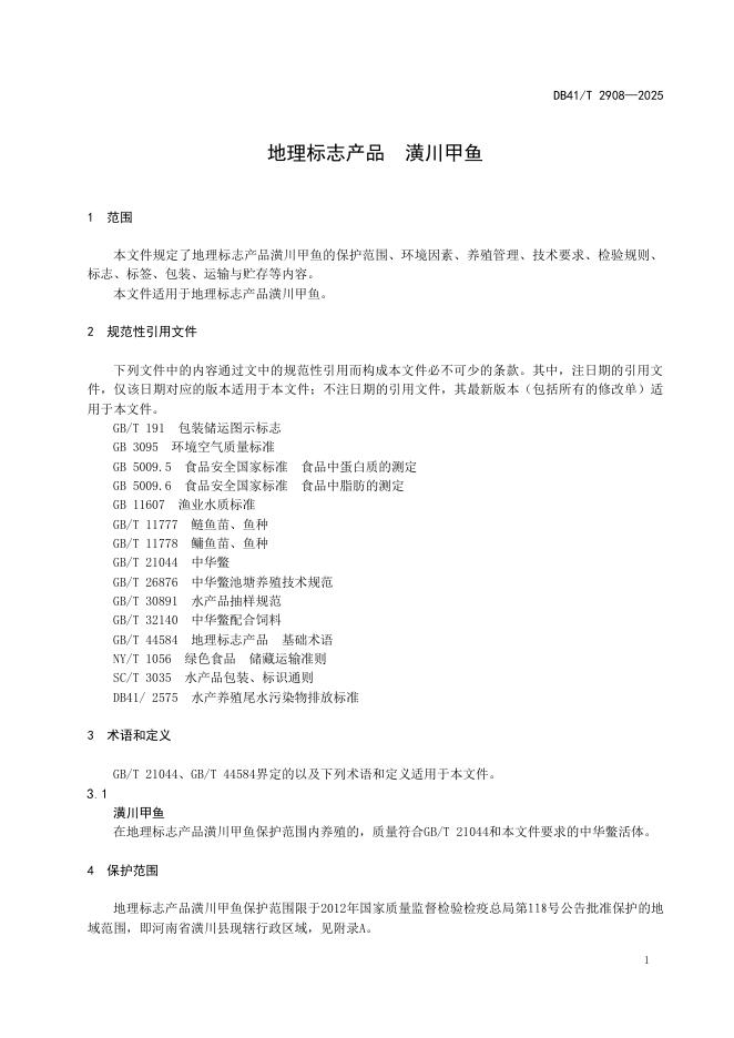 DB41/T 2908-2025 地理标志产品 潢川甲鱼