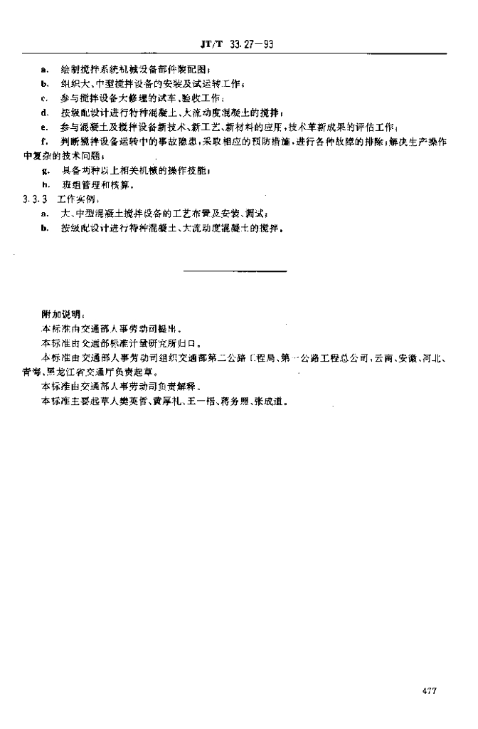 JT/T 33.27-1993 交通行业工人技术等级标准公路工程与航务工程水泥混凝土搅拌设备操作工