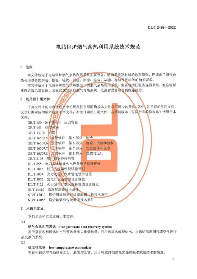 DL/T 2499-2022 电站锅炉烟气余热利用系统技术规范