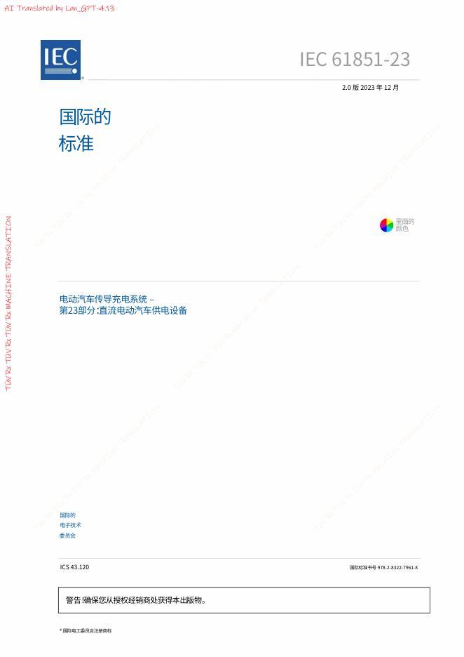 IEC 61851-23:2023 电动汽车导电充电系统 第23部分:直流电动汽车供电设备