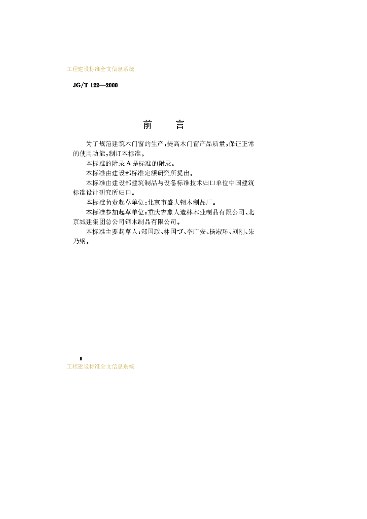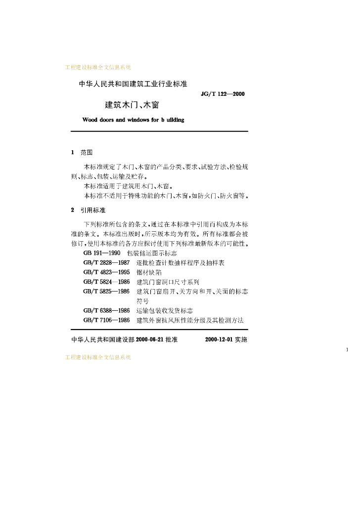 JG/T 122-2000 建筑木门、木窗