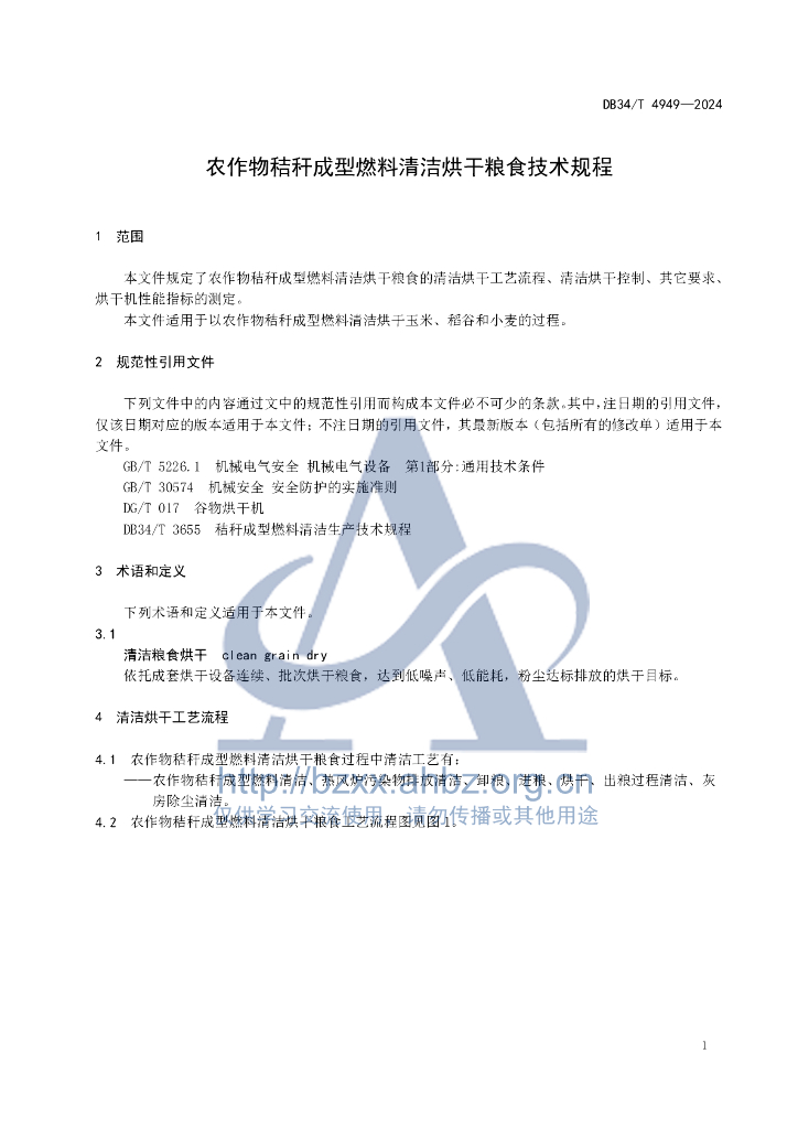 DB34/T 4949-2024 农作物秸秆成型燃料清洁烘干粮食技术规程