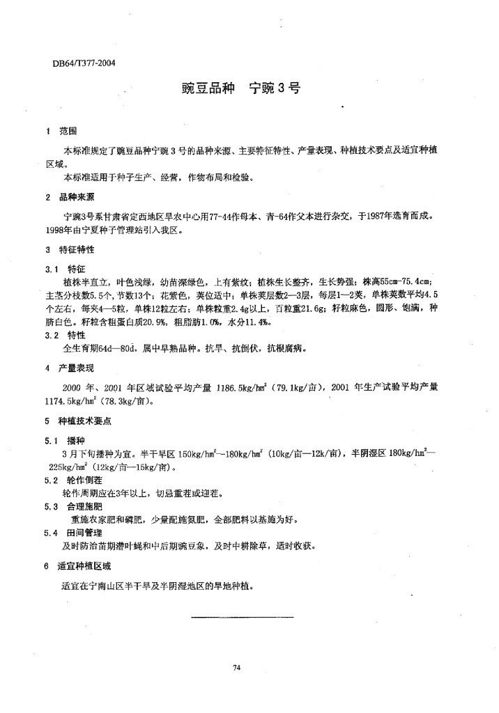 DB64/T 377-2004 豌豆品种 宁豌3号