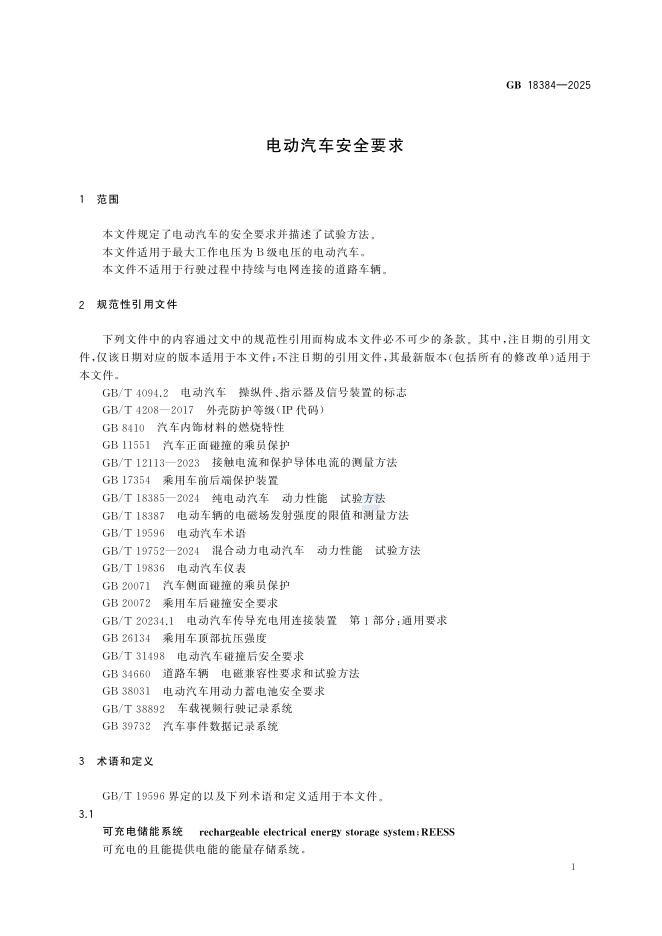 GB 18384-2025 电动汽车安全要求