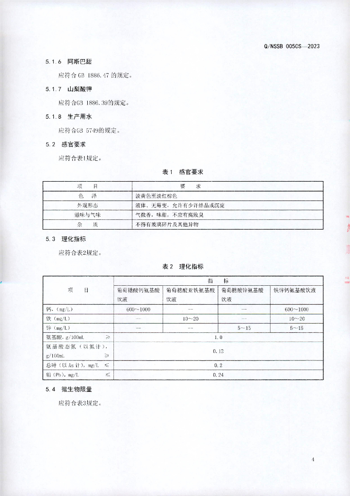 Q/NSSB 0050S-2023 强化氨基酸饮液
