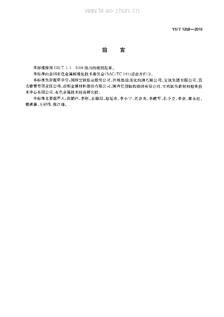 YS/T 1259-2018 锆合金管材表面氟离子含量的测定 分光光度法