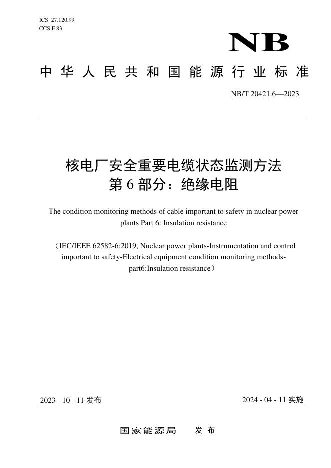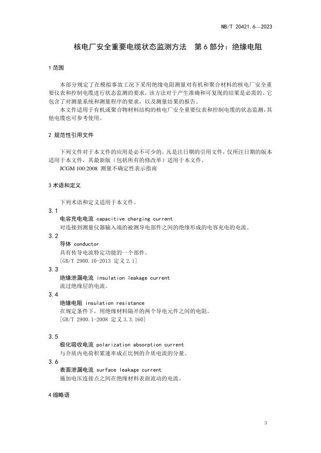 NB/T 20421.6-2023 核电厂安全重要电缆状态监测方法 第6部分:绝缘电阻