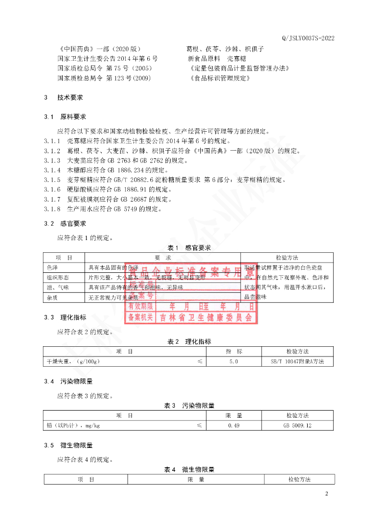 Q/JSLY 0037S-2022 浓缩葛根枳俱子压片糖果