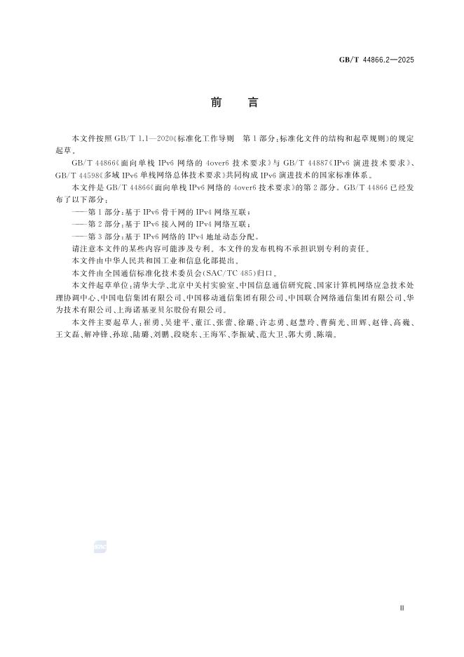 GB/T 44866.2-2025 面向单栈IPv6网络的4over6技术要求 第2部分:基于IPv6接入网的IPv4网络互联