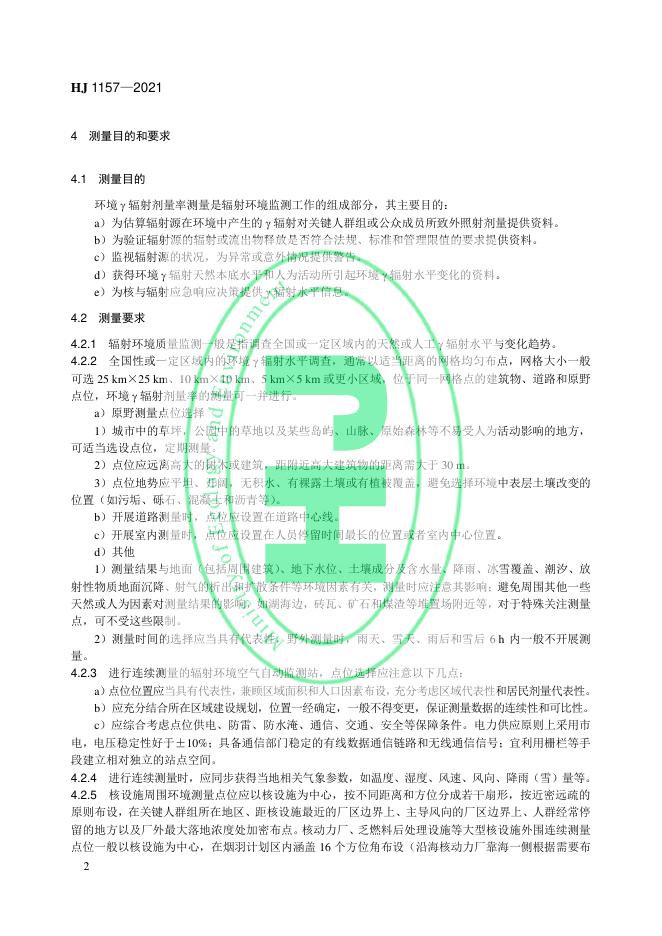 HJ 1157-2021 环境γ辐射剂量率测量技术规范