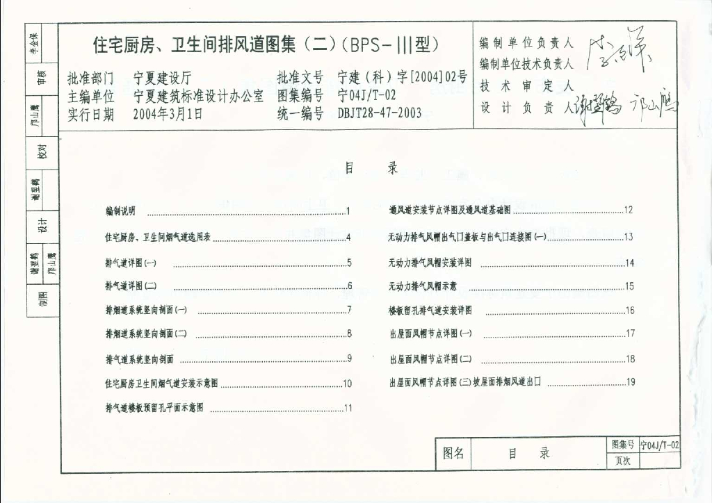 宁04J/T-02 住宅厨房、卫生间排风道图集(二)(BPS-Ⅲ型)