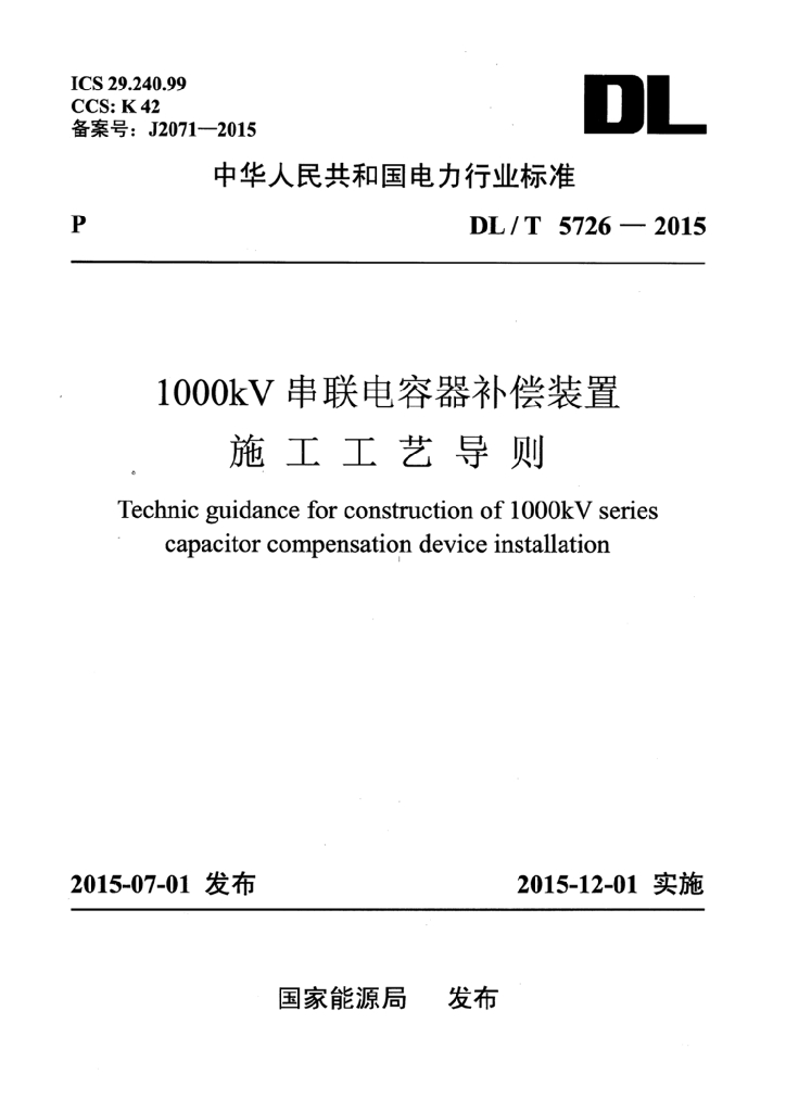 DL/T 5726-2015 1000kV串联电容器补偿装置施工工艺导则