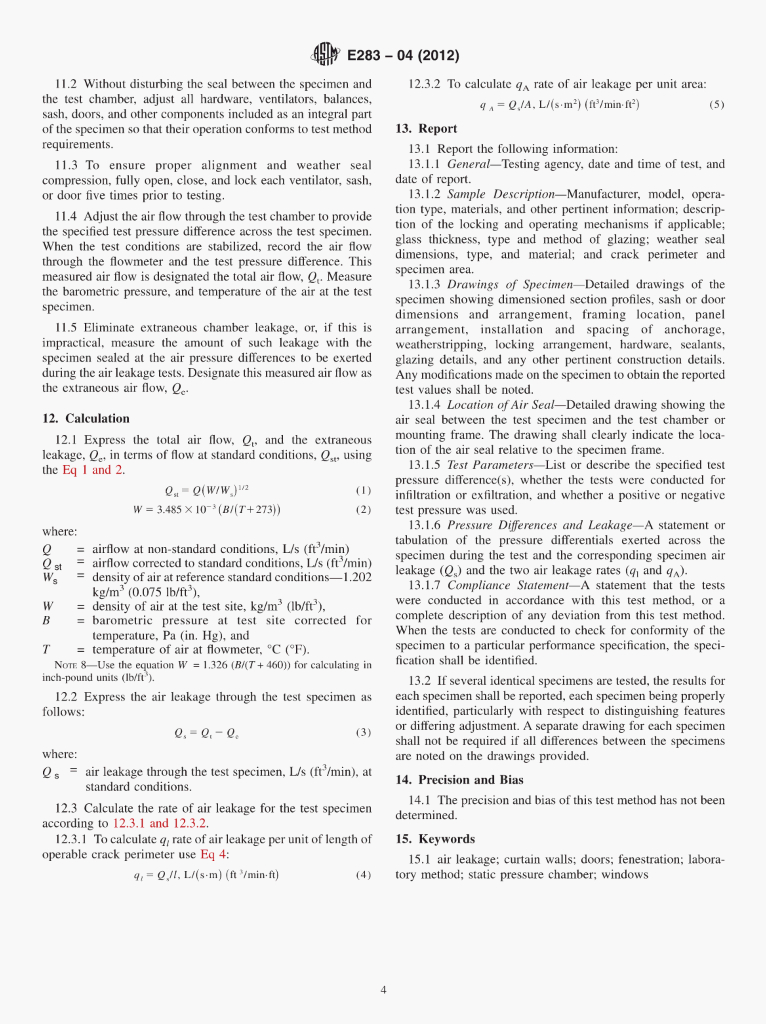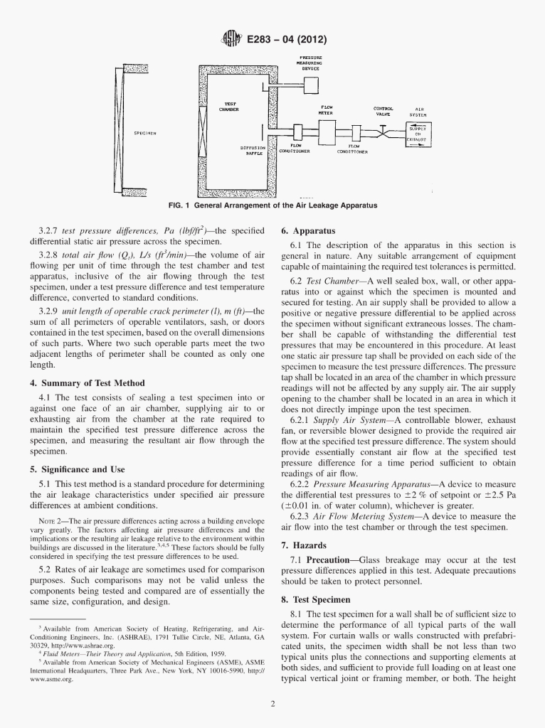 ASTM E283-04 Standard Test Method for Determining Rate of Air Leakage Through Exterior Windows,Curtain Walls, and Doors Under Specified Pressure Differences Across the SpecimenT