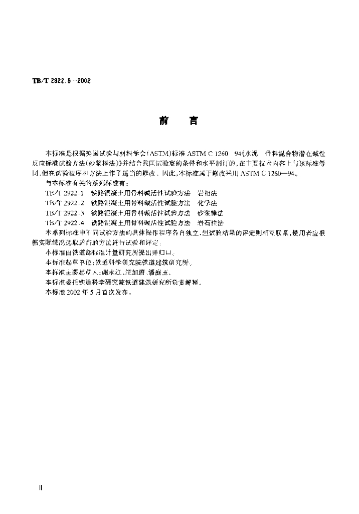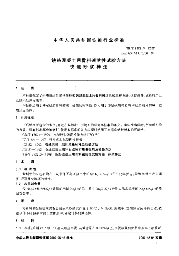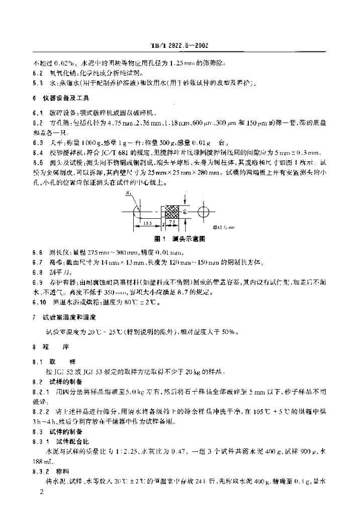 TB/T 2922.5-2002 铁路混凝土用骨料碱活性试验方法快速砂浆棒法