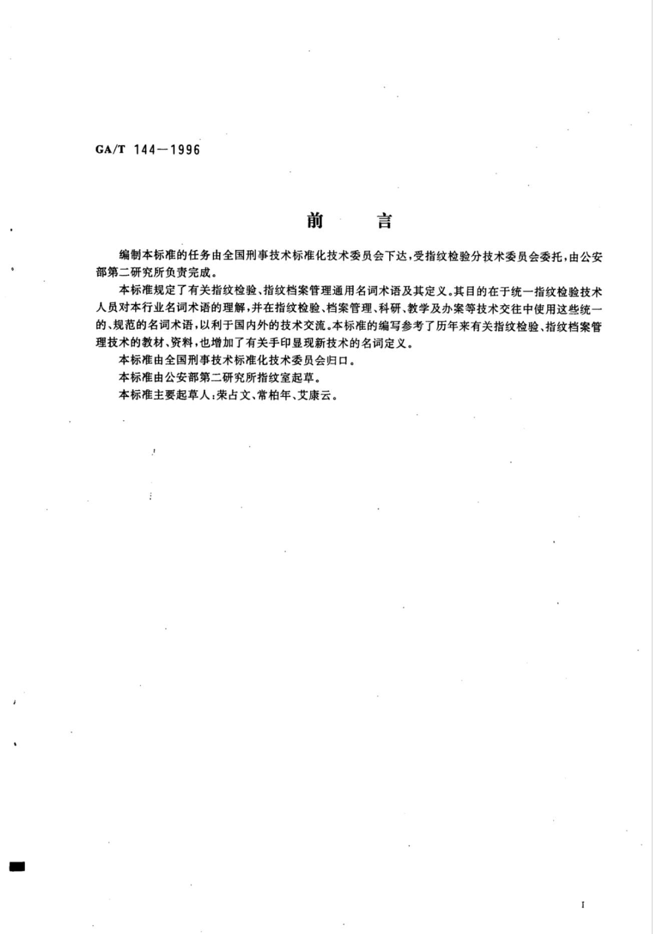 GA/T 0144-1996 指纹专业名词术语