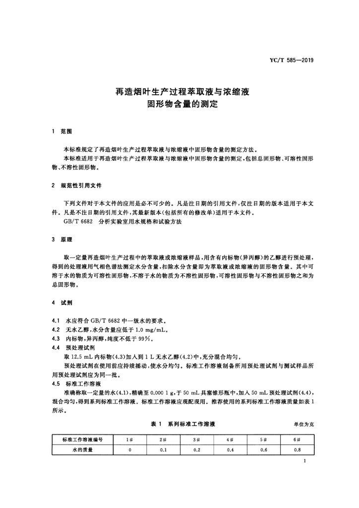 YC/T 585-2019 再造烟叶生产过程萃取液与浓缩液 固形物含量的测定