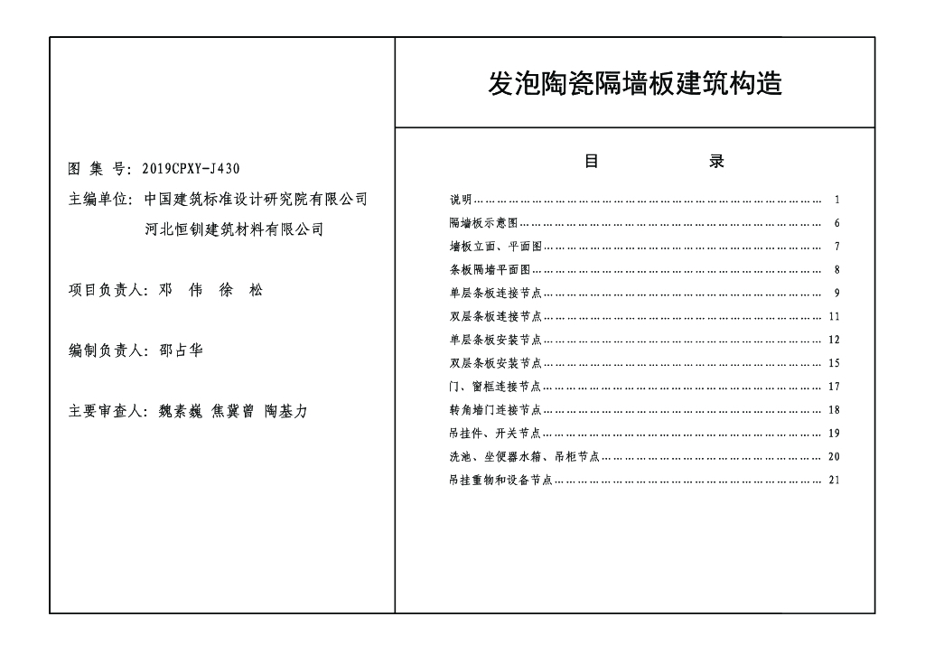 2019CPXY-J430 发泡陶瓷隔墙板建筑构造图集