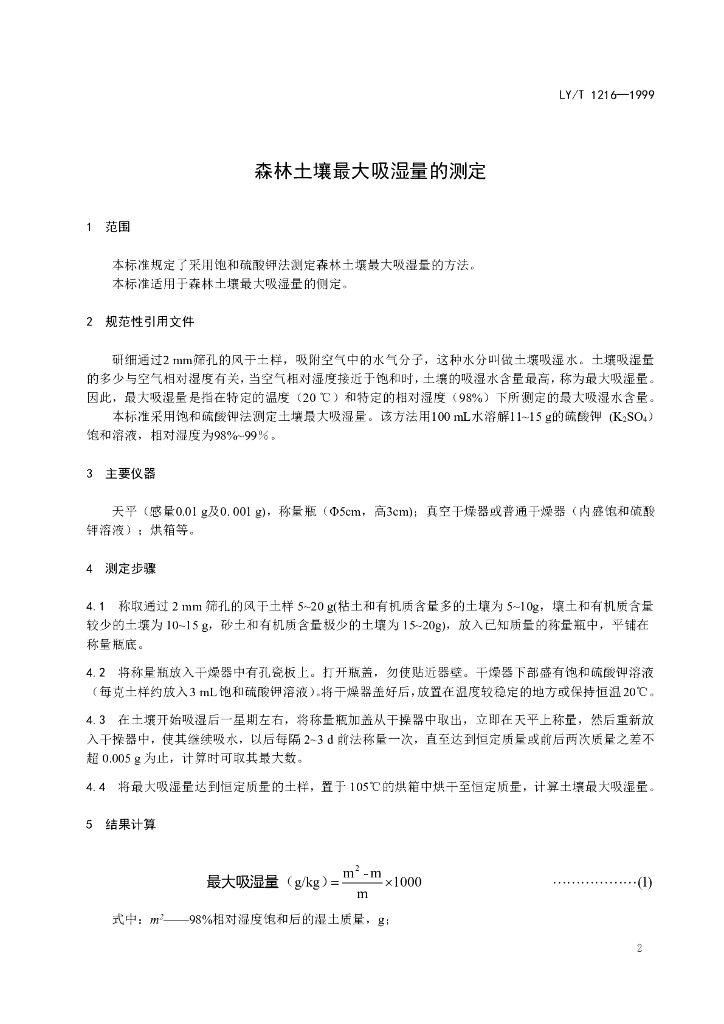 LY/T 1216-1999 森林土壤最大吸湿量的测定